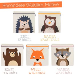 Waldtiere Design - Unsere Aufbewahrungskiste verfügt auf der Vorderseite über ein hochwertiges Filz Motiv. Der süße Fuchs wird deine Kinder begeistern. Ob als Aufräumhelfer oder als Dekoration, ihr werdet viel Freude an dieser Universalbox haben.
