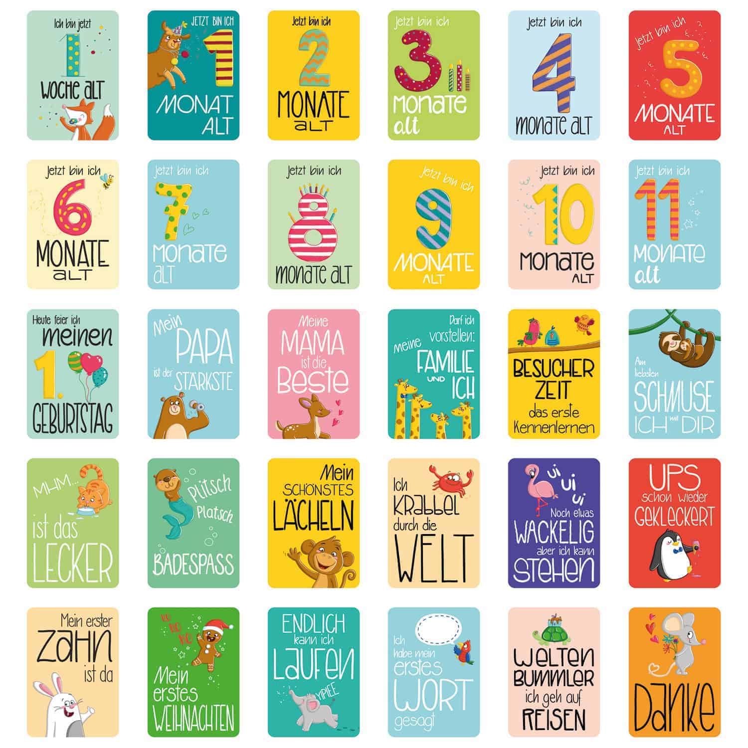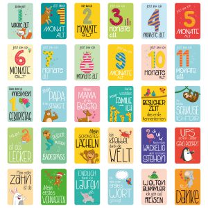Hochwertige Verarbeitung - Dank der abgerundeten Ecken, stabilem Kartonpapier, sehr gut lesbarer Schrift und ungefährlichen Farben sind unsere Meilensteinkarten (A6 Format) besonders kinderfreundlich. Du erhältst von uns erstklassige Qualität made in Germany.